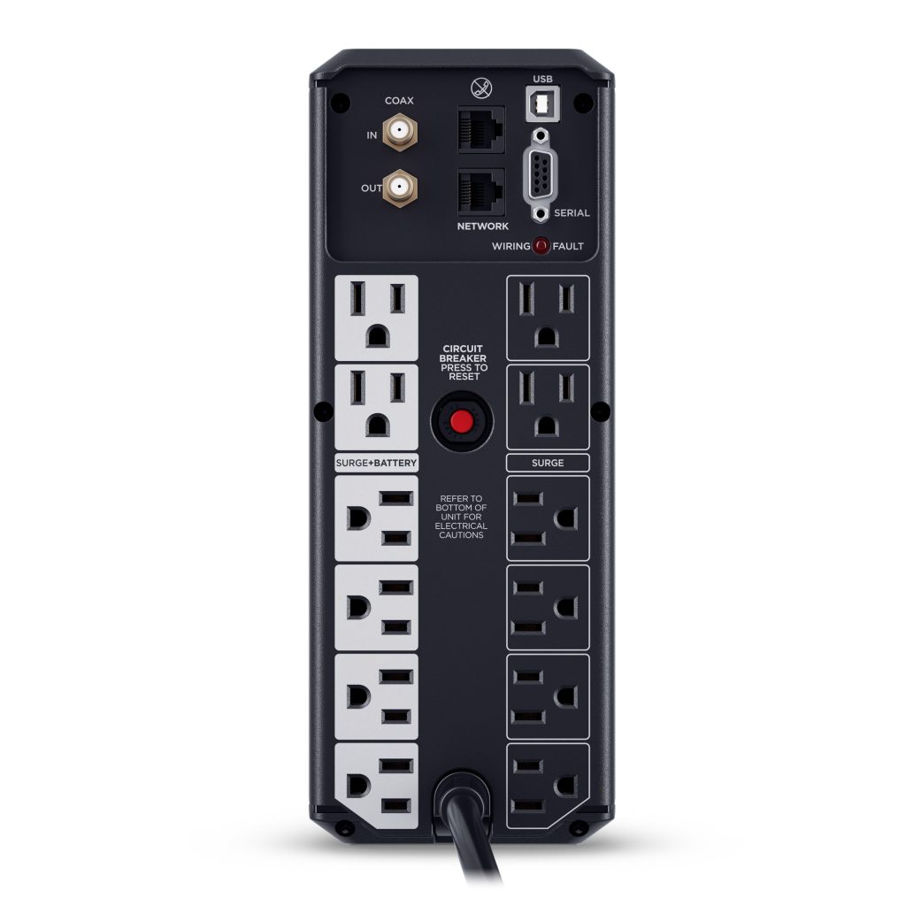 Prevents power surges that travel through coaxial and ethernet lines from causing damage to electronics. - Line Interactive Topology