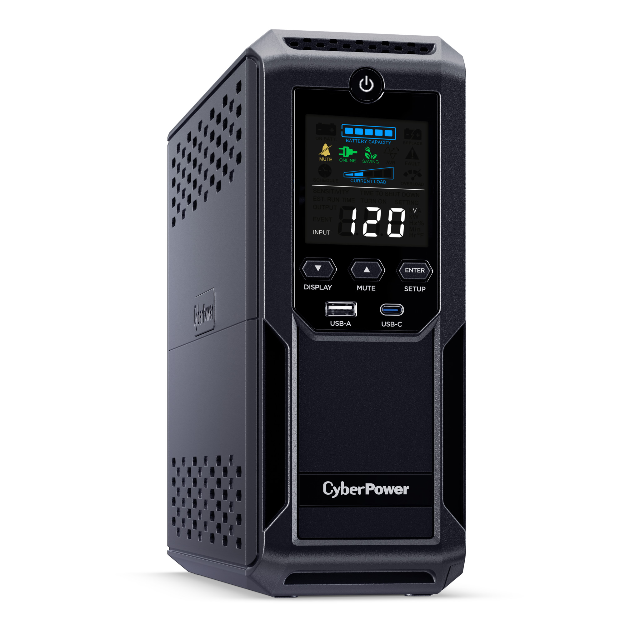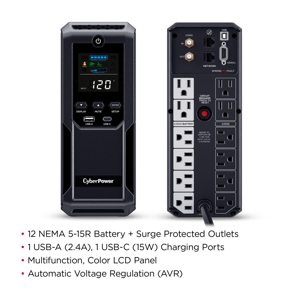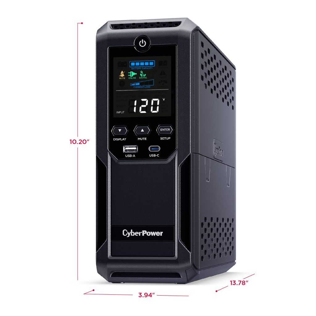 A mini-tower UPS with line interactive topology, the CyberPower Intelligent LCD CP1500AVRLCD3 provides battery backup (using simulated sine wave output) and surge protection for desktop computers, workstations, networking devices, and home entertainment systems. The CP1500AVRLCD3 uses Automatic Voltage Regulation (AVR) to correct minor power fluctuations without switching to battery power, which extends battery life. AVR is essential in areas where power fluctuations occur frequently. The CP1500AVRLCD3 comes with a three-year warranty (including coverage of batteries) and a $500,000 Connected Equipment Guarantee.
