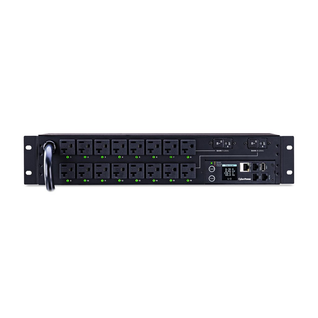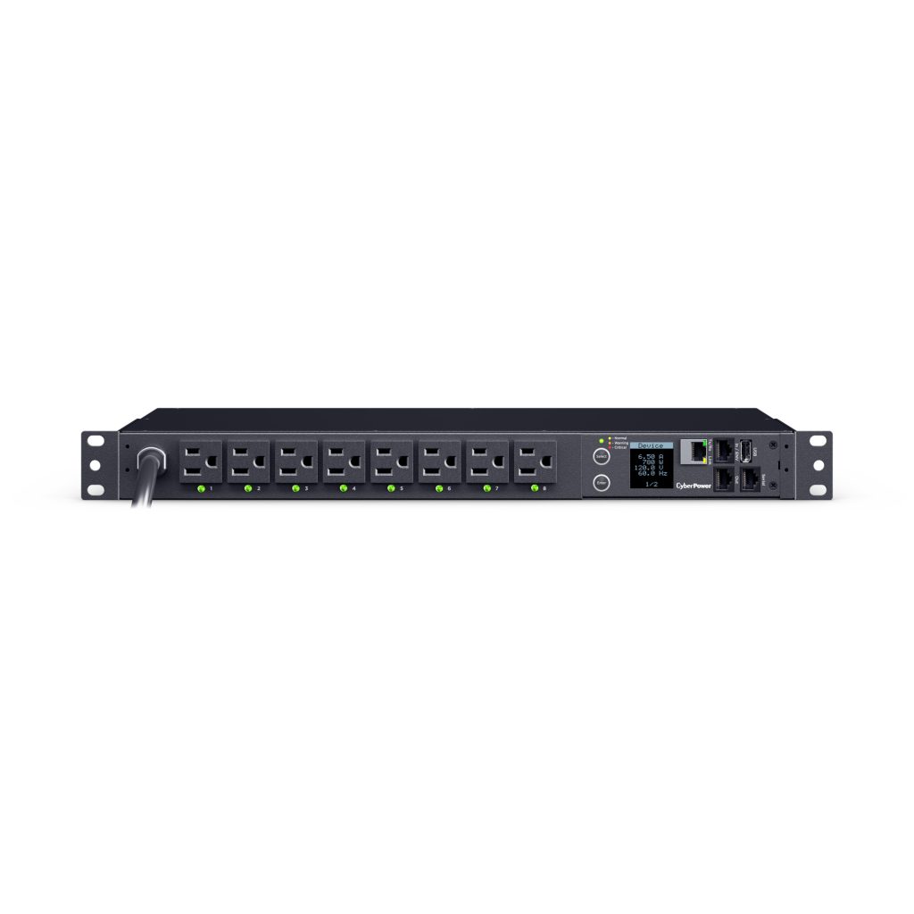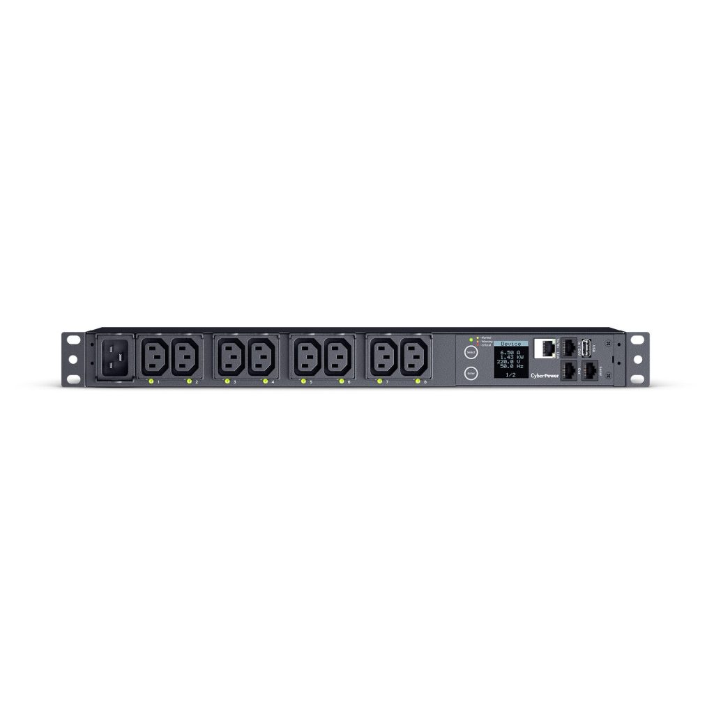 Models in CyberPower’s Switched PDU Series provide network-grade power distribution, remote/local monitoring, and outlet control. A Switched PDU allows for remote management, monitoring of PDU vitals, and control of outlets and networked clients. Power status can be monitored over the network, using the CyberPower Management Console and the RJ45 Ethernet port, or locally by using the digital LCD meter. With the CyberPower Management Console, PDU outlets can be switched on and off to remotely reboot connected equipment. Also, planned power cycling of attached equipment can occur without disrupting performance.