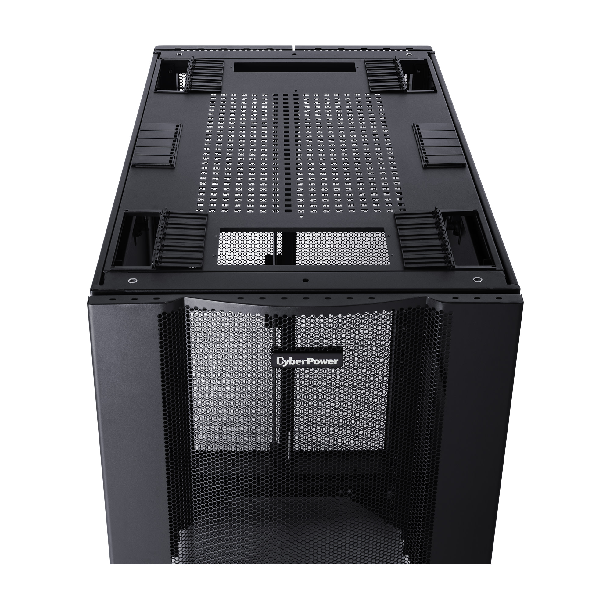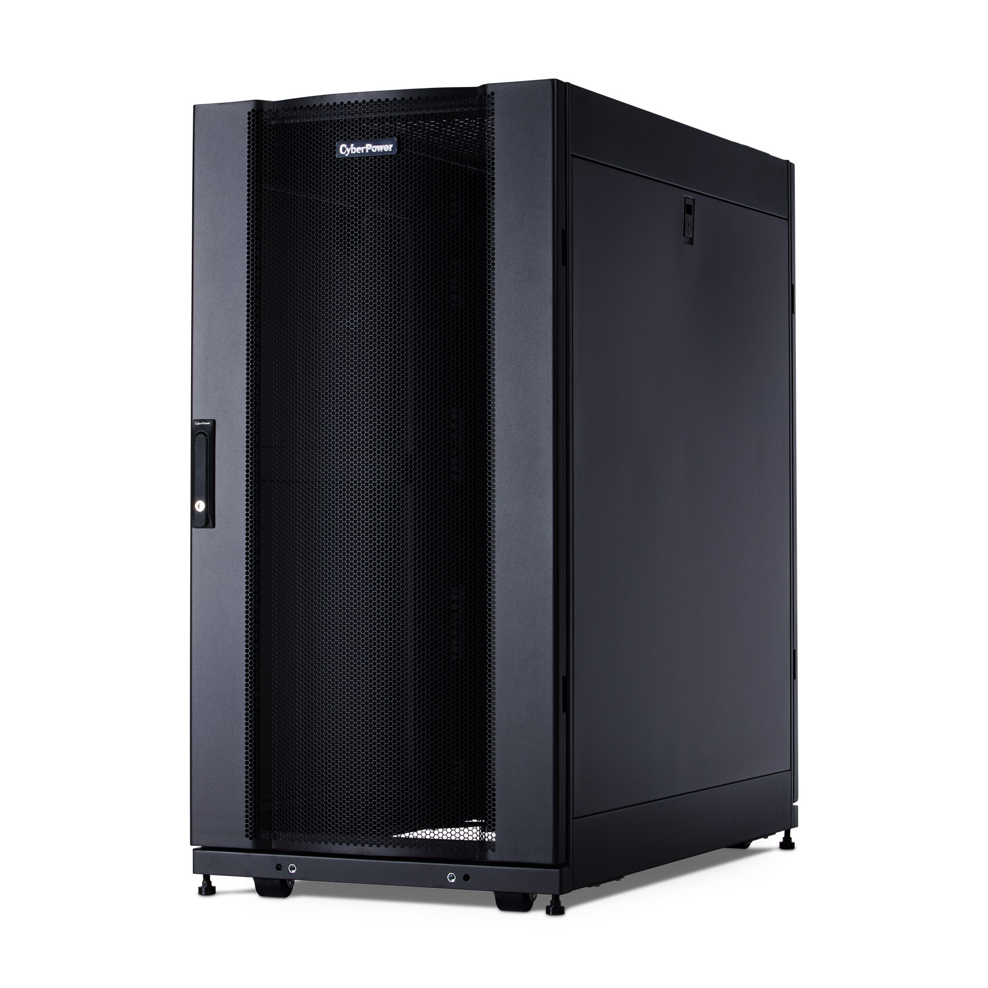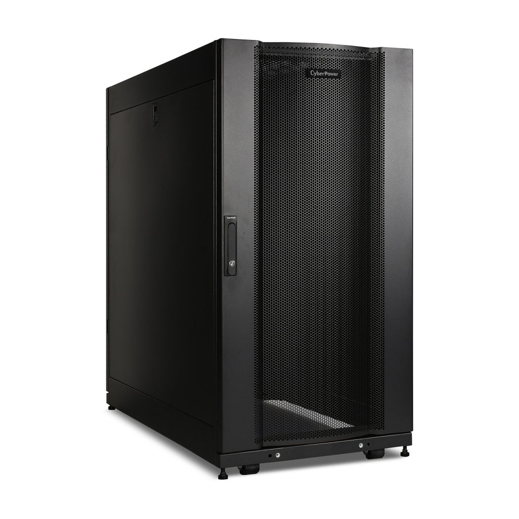 The CR24U11001 rack enclosure includes convenient top panel cable access openings, perforated doors for efficient airflow, adjustable rack angles, toolless vertical PDU mounting, and more. The CR24U11001 server cabinet ships fully assembled for quick deployment and can be customized with compatible accessories to meet specific requirements. It is covered by a 5-year limited warranty.