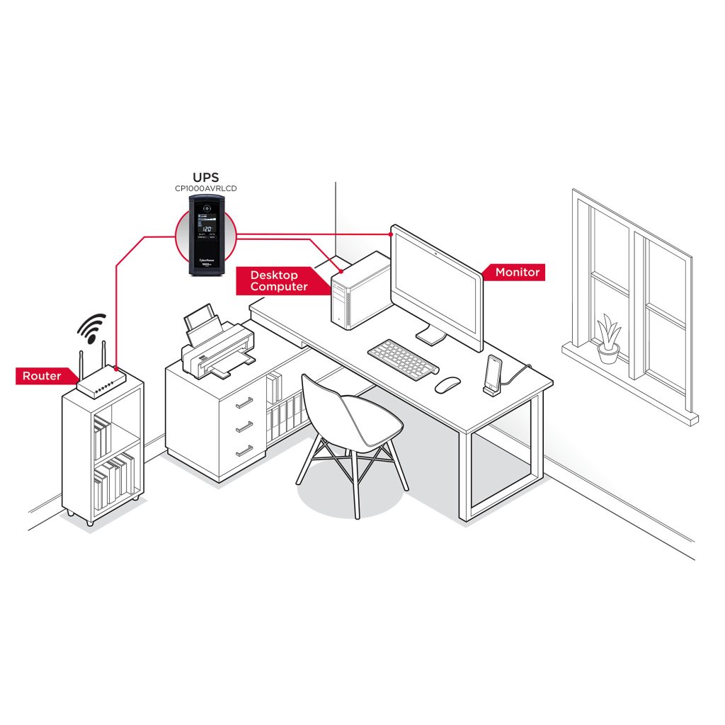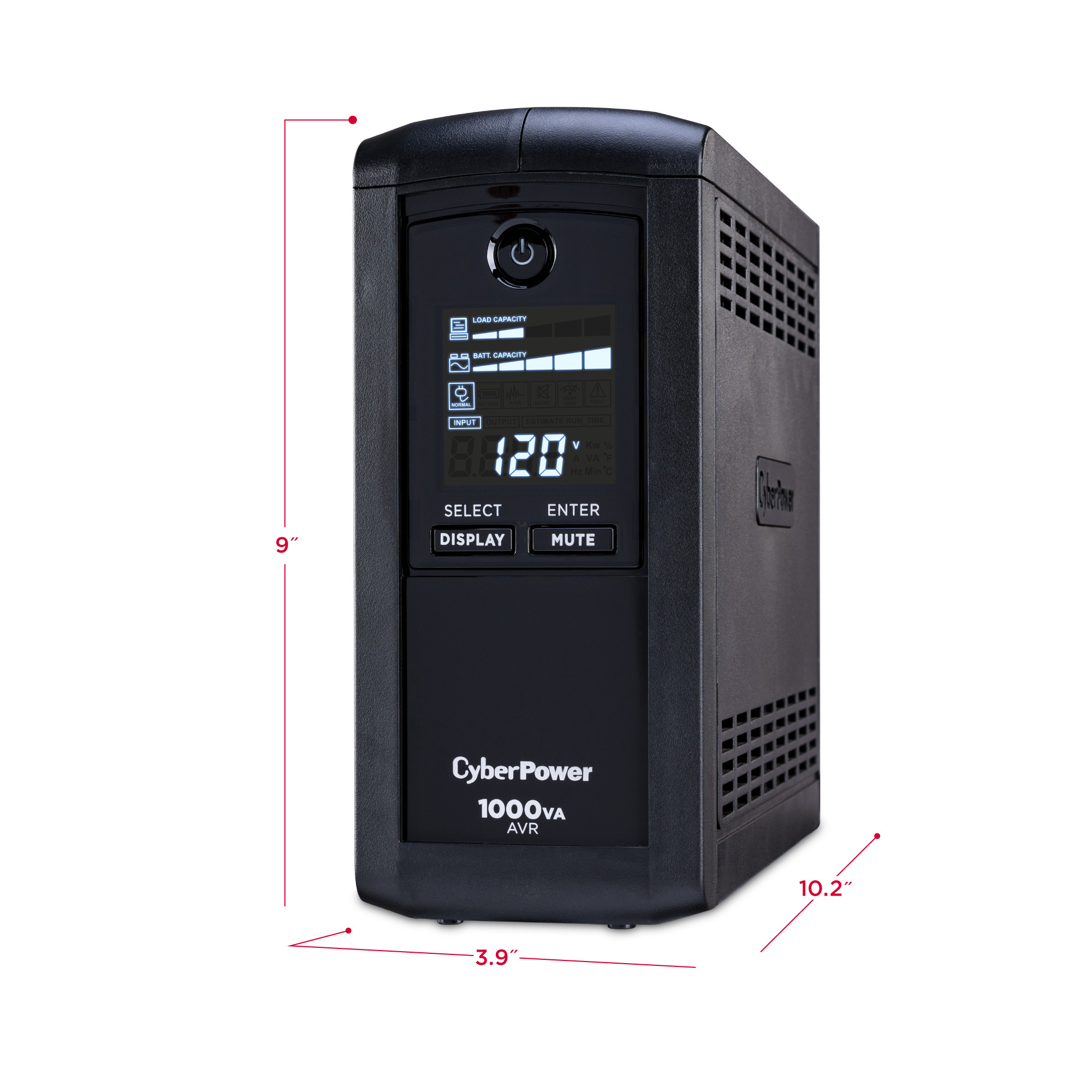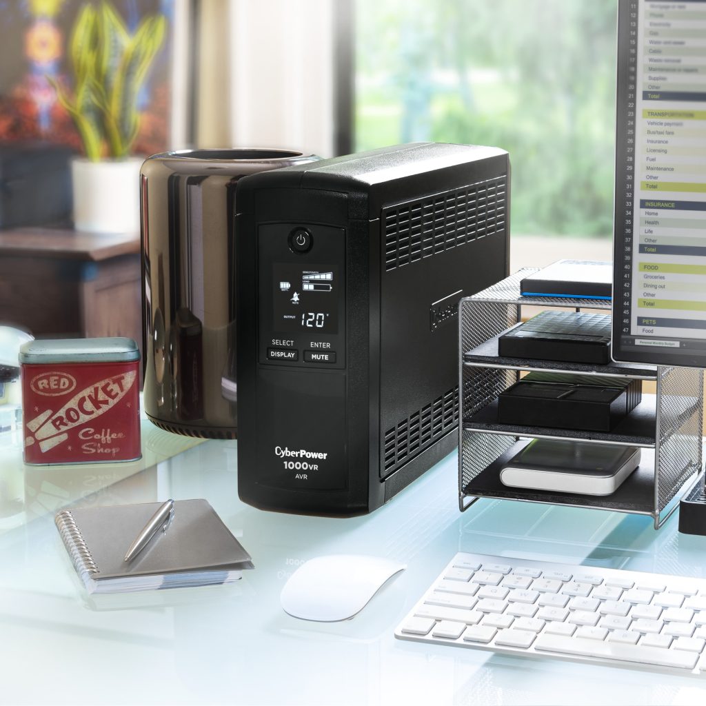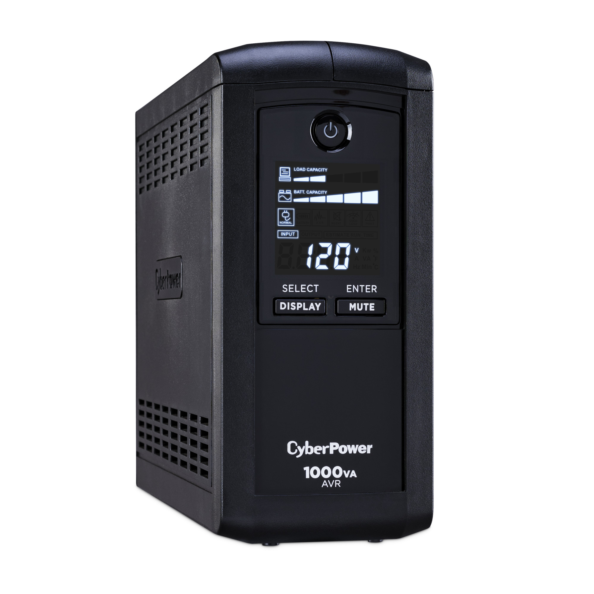 A mini-tower UPS with line interactive topology, the CyberPower Intelligent LCD CP1000AVRLCD provides battery backup (using simulated sine wave output) and surge protection for desktop computers, workstations, networking devices, and home entertainment systems. The CP1000AVRLCD uses Automatic Voltage Regulation (AVR) to correct minor power fluctuations without switching to battery power, which extends battery life. AVR is essential in areas where power fluctuations occur frequently. The CP1000AVRLCD comes with a three-year warranty (including coverage of batteries) and a $350,000 Connected Equipment Guarantee.