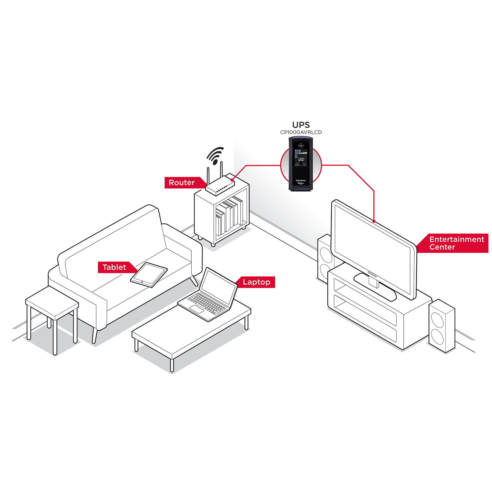 Prevents power surges that travel through coaxial and Ethernet lines from causing damage to electronics. - Line Interactive Topology