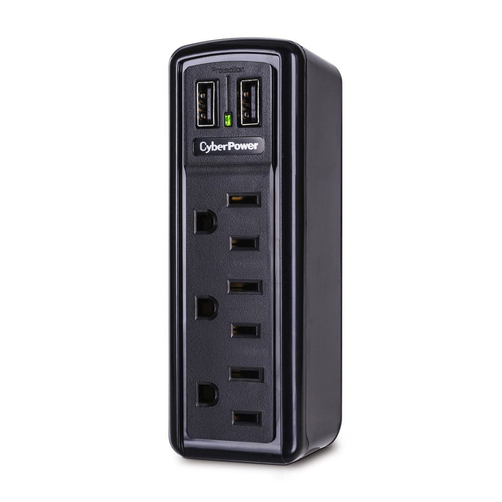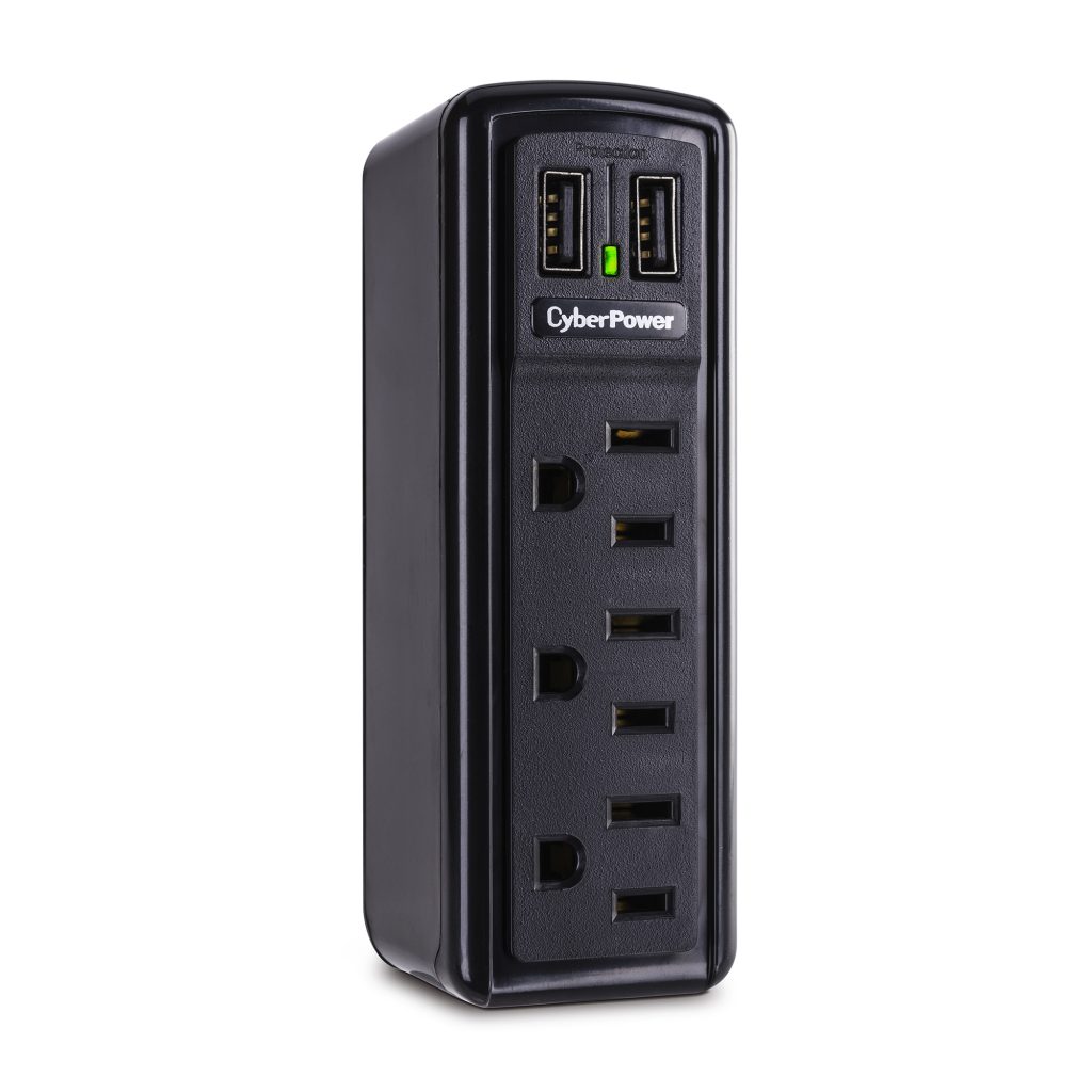 The Professional Surge Protector CSP300WU safeguards common home and office devices, such as computers and electronics, by absorbing spikes in energy caused by storms and electrical power surges. Designed for convenience, the portable CSP300WU is ideal for travelers, provides 918 joules of protection, has three surge-protected outlets, and a folding wall tap plug. Two USB (2.1 Amp shared) ports charge personal electronics, including smartphones, digital cameras, MP3 players, and other devices. The CSP300WU also features metal oxide varistor (MOV) technology, an EMI/RFI noise filter, a status indicator, and impact-resistant casing. This surge suppressor comes with a 1 Year Limited Warranty and a Connected Equipment Guarantee.