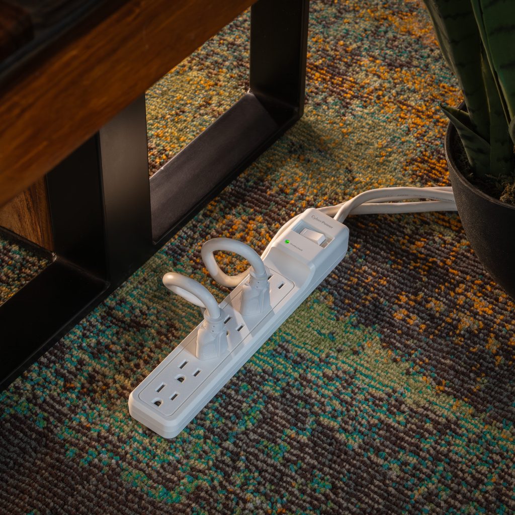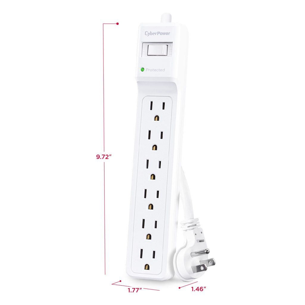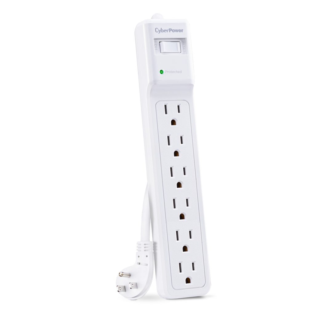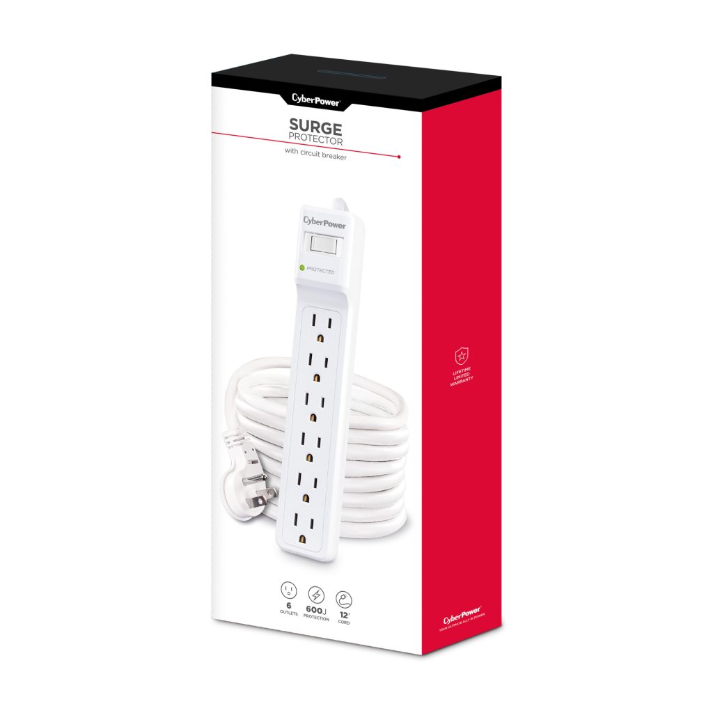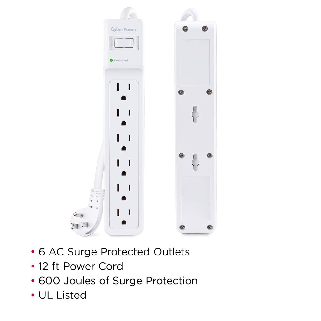 The CyberPower B6012 Surge Protector delivers reliable protection for home and office electronics, safeguarding computers and other sensitive devices from power surges and electrical fluctuations. Designed to withstand energy spikes caused by storms or grid irregularities, it provides 600 joules of surge protection across six outlets. Its durable 12-foot power cord features a space-saving right-angle plug for convenient and flexible placement.