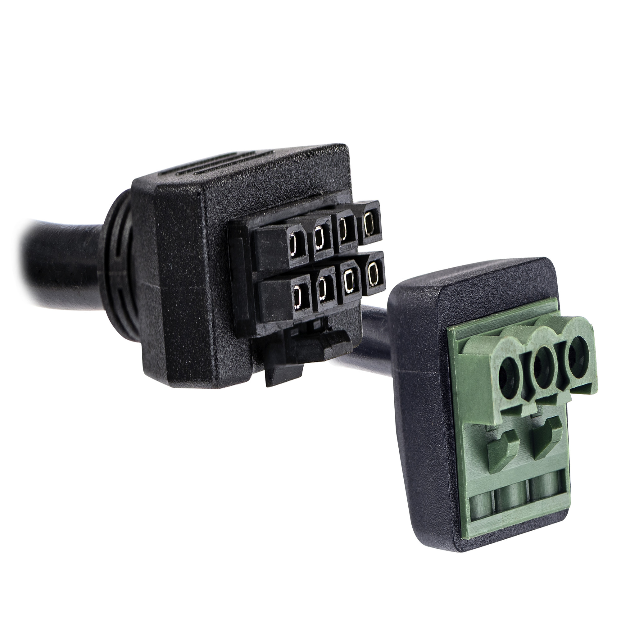The CBL3PIN500MLX-020-BLK-CM cables are 3-pin connector to 8-pin Molex terminated. These cables are designed to connect a power adaptor to a desktop ONT. The CBL3PIN500MLX-020-BLK-CM is available in 10 ft lengths and comes in black.