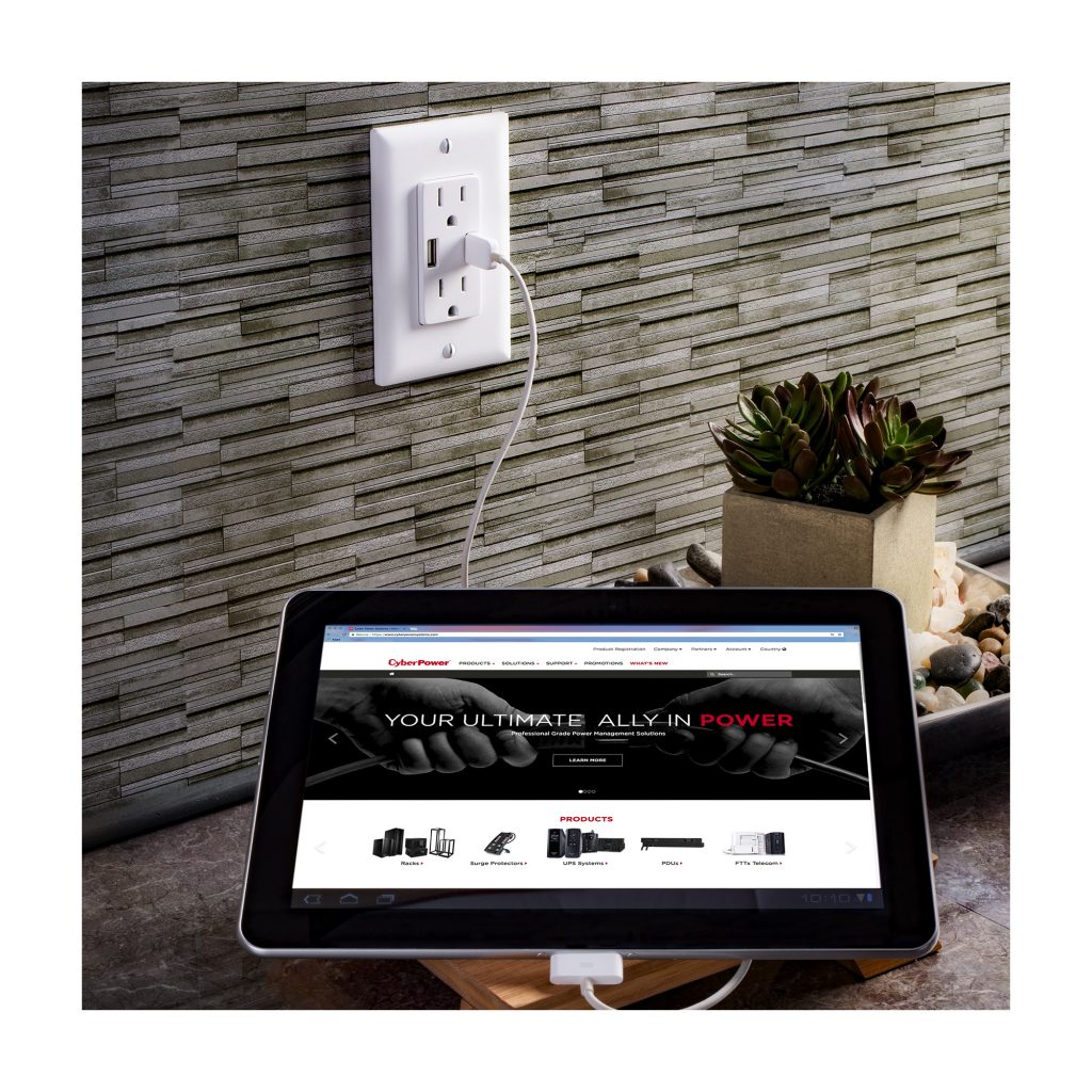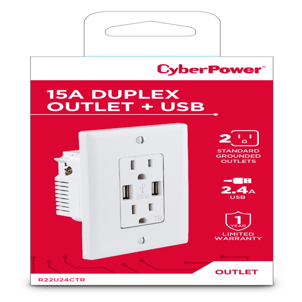 The R22U24CTR in-wall, 2OL/2USB (2.4A) receptacle upgrades the outlets in your home with 2 USB and 2 AC outlets, allowing you to charge and power multiple devices at the same time. It features a rapid charging feature, ultra charge, which charges your smartphones, laptops, and tablets 40% faster. You can charge up to 1 laptop or 2 smartphones at full capacity at the same time. The in-wall modern design makes the receptacle easily accessible. Attractive wallplate included.
