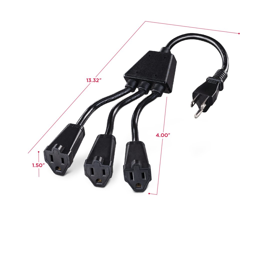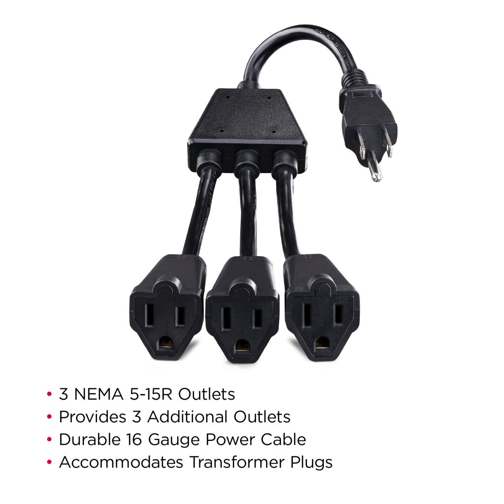 The GC301 1 to 3 outlet extender from CyberPower expands one outlet into three outlets, giving you a 13 inch total reach, with 4 inch cord lengths to each individual outlet from the junction housing. Because its outlets are on separate cords, the GC301 is ideal for accommodating transformer plugs and power cords of differing lengths.
