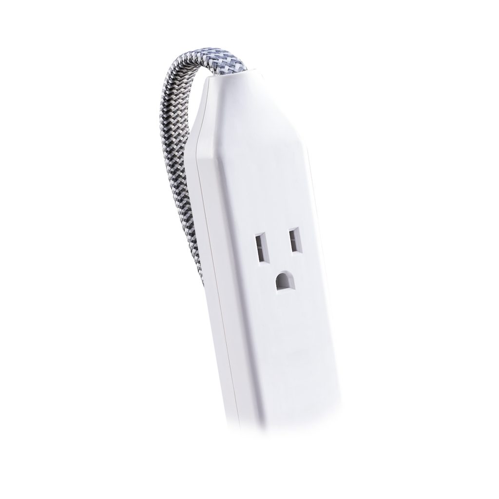 Extend power to where you want it! Set up a temporary personal power station to charge multiple mobile devices using the two USB ports, or power devices with the three AC outlets. This Reach & Charge™ USB & AC Power Cord provides three standard-spaced surge-protected outlets and two 2.4A (shared) USB charging ports, perfect for mobile devices, fitness trackers, and smart home devices. The GC306U has a stylish, braided, 6' cord that prevents tangles, and an integrated loop for a convenient and quick mounting solution. A low-profile plug fits in tight spaces to keep power within reach.