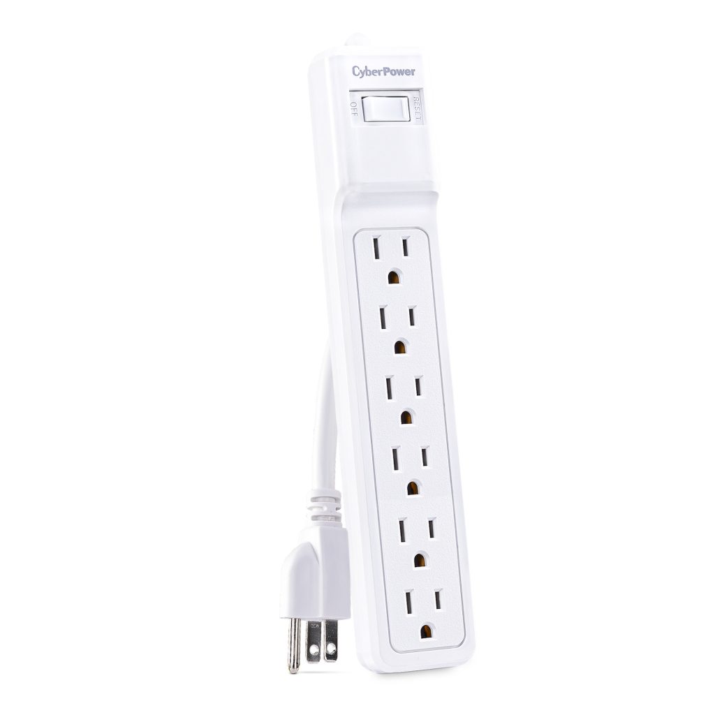 The Essential Surge Protector MP1073SS from CyberPower offers vital surge protection for common home and office devices such as computers and electronics. It prevents spikes in energy caused by storms and electrical power surges from reaching your electronic equipment. The MP1073SS provides 500 joules of protection with 6 outlets and a power cord (2 ft.).