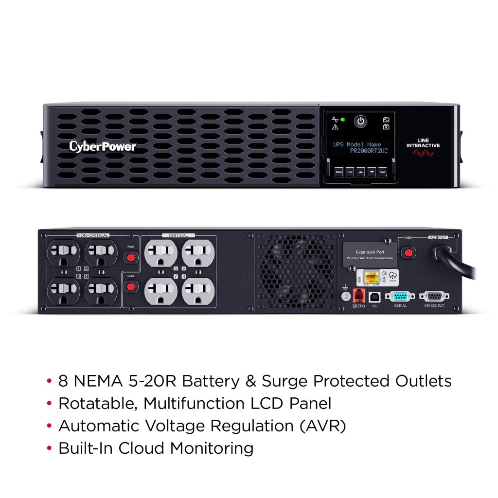 The PR2000RT2UC is a Smart App Sinewave rack/tower convertible UPS with line-interactive topology, surge protection, and battery backup. CyberPower’s Smart App Sinewave series has sine wave output to eliminate power gaps that can be detected by sensitive equipment and cause unexpected shutdowns.