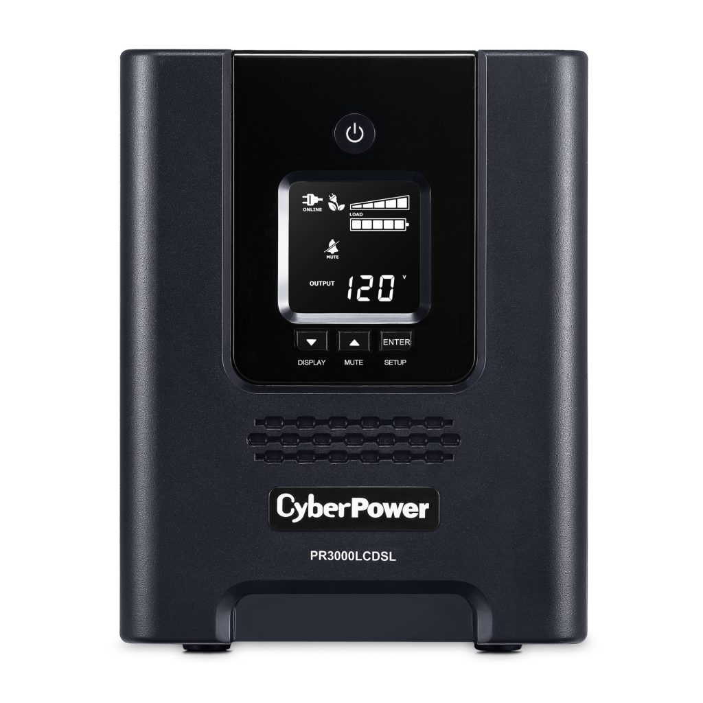 A mini-tower UPS with line interactive topology, the CyberPower Smart App Sinewave PR3000LCDSL provides battery backup, power protection (using sine wave output), and surge protection for corporate servers, department servers, storage appliances, network devices, and telecom installations requiring Active PFC power source compatibility. The PR3000LCDSL uses Automatic Voltage Regulation (AVR) to correct minor power fluctuations without switching to battery power, which extends battery life. AVR is essential in areas where power fluctuations occur frequently. The PR3000LCDSL comes with a three-year warranty, and a $375,000 Connected Equipment Guarantee.