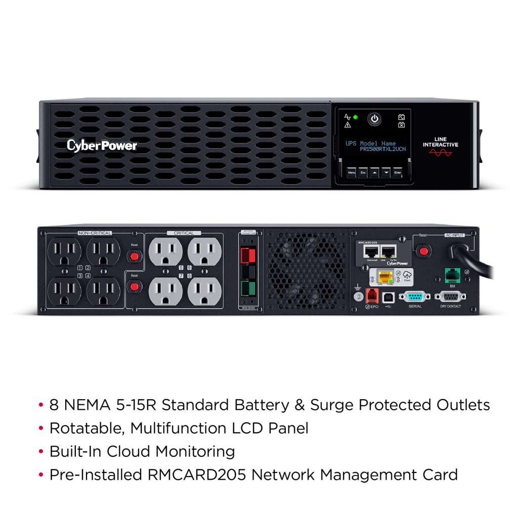 The PR1500RTXL2UCN is a Smart App Sinewave rack/tower convertible UPS with line-interactive topology, surge protection, and battery backup. CyberPower’s Smart App Sinewave series has sine wave output to eliminate power gaps that can be detected by sensitive equipment and cause unexpected shutdowns.