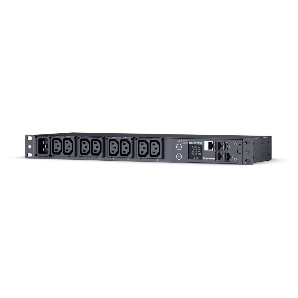 The PDU71006 supports inputs between 200-240V and includes 8 IEC-320 C13 outlets. Other features include a rack mount design (1U), built-in web interface (RJ-45 ethernet connection), interactive digital display and power event notifications. The CyberPower PDU71006 is protected by a three-year limited warranty.
