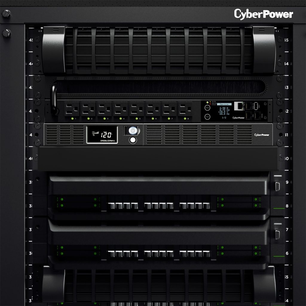 A rackmount UPS with line interactive topology, the CyberPower Smart App LCD OR500LCDRM1U provides battery backup (using simulated sine wave output) and surge protection for department servers, workgroup servers, workstations, network devices, and telecom installations without active PFC power supplies. The OR500LCDRM1U uses Automatic Voltage Regulation (AVR) to correct minor power fluctuations without switching to battery power, which extends battery life. AVR is essential in areas where power fluctuations occur frequently. The OR500LCDRM1U comes with a three-year warranty and a $300,000 Connected Equipment Guarantee.