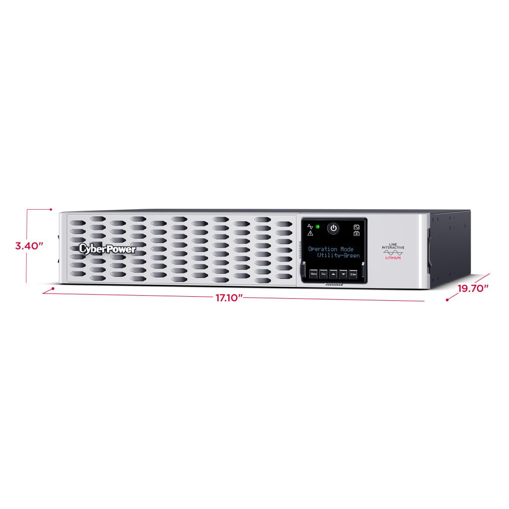 The lithium PRL1500RT2UC is a Smart App Sinewave rack/tower convertible UPS with line-interactive topology, surge protection, and battery backup. CyberPower’s Smart App Sinewave series has sine wave output to eliminate power gaps that can be detected by sensitive equipment and cause unexpected shutdowns.