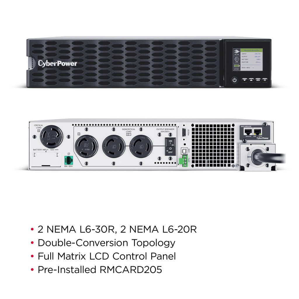 The CyberPower Smart App Online OL5KRTHD high-density design offers more power in less space. In fact, it can be configured into 2U of rack space or as a tower, compared to 3U and 4U for similar competitive UPS models - giving you more room to grow. The OL5KRTHD features double-conversion topology for seamless power protection and a pre-installed RMCARD205.