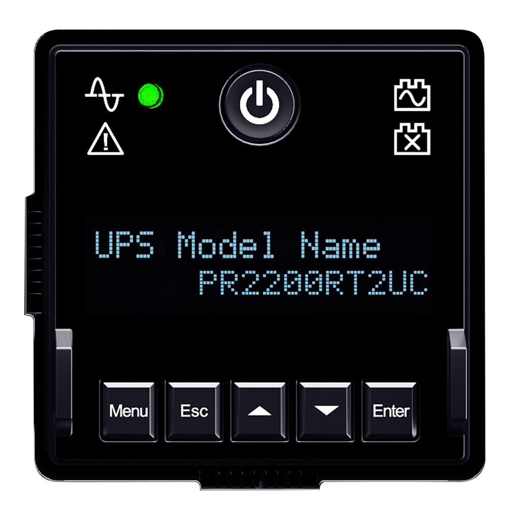 The Smart App Sinewave PR2200RT2UC improves battery life through battery equalization technology and Automatic Voltage Regulation (AVR), which corrects minor power fluctuations without switching to battery power. The enhanced chassis design with an easy-to-access toolless front panel, captive screws for battery panel access, and color-coded rear panel make battery changes and installations simple and fast. The PR2200RT2UC also has an innovative LCD panel that rotates 90°, tilts for a better viewing angle, and provides information on 47 different settings including UPS stats, UPS setup and control management, and testing options.