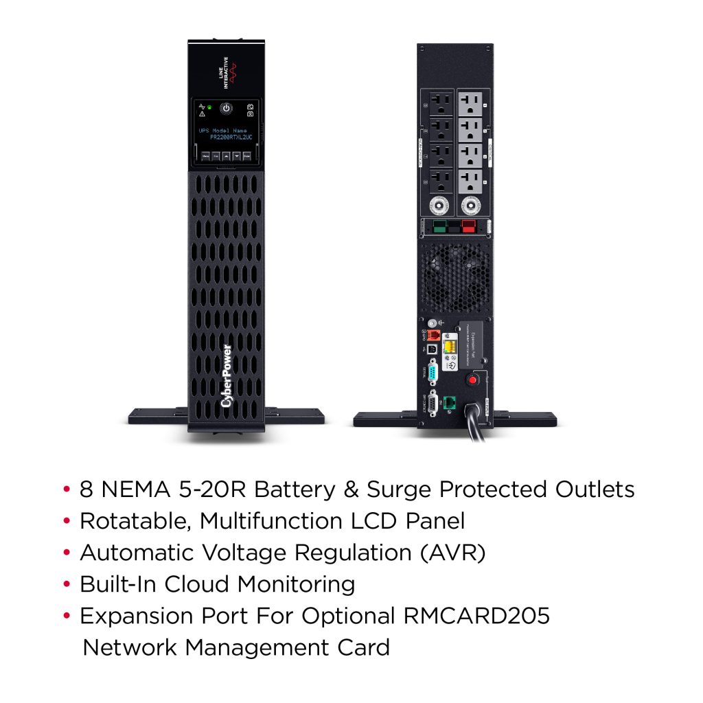 The PR2200RTXL2UC is a Smart App Sinewave rack/tower convertible UPS with line-interactive topology, surge protection, and battery backup. CyberPower’s Smart App Sinewave series creates a sine wave output devoid of power gaps which could cause unexpected shutdowns of sensitive equipment.