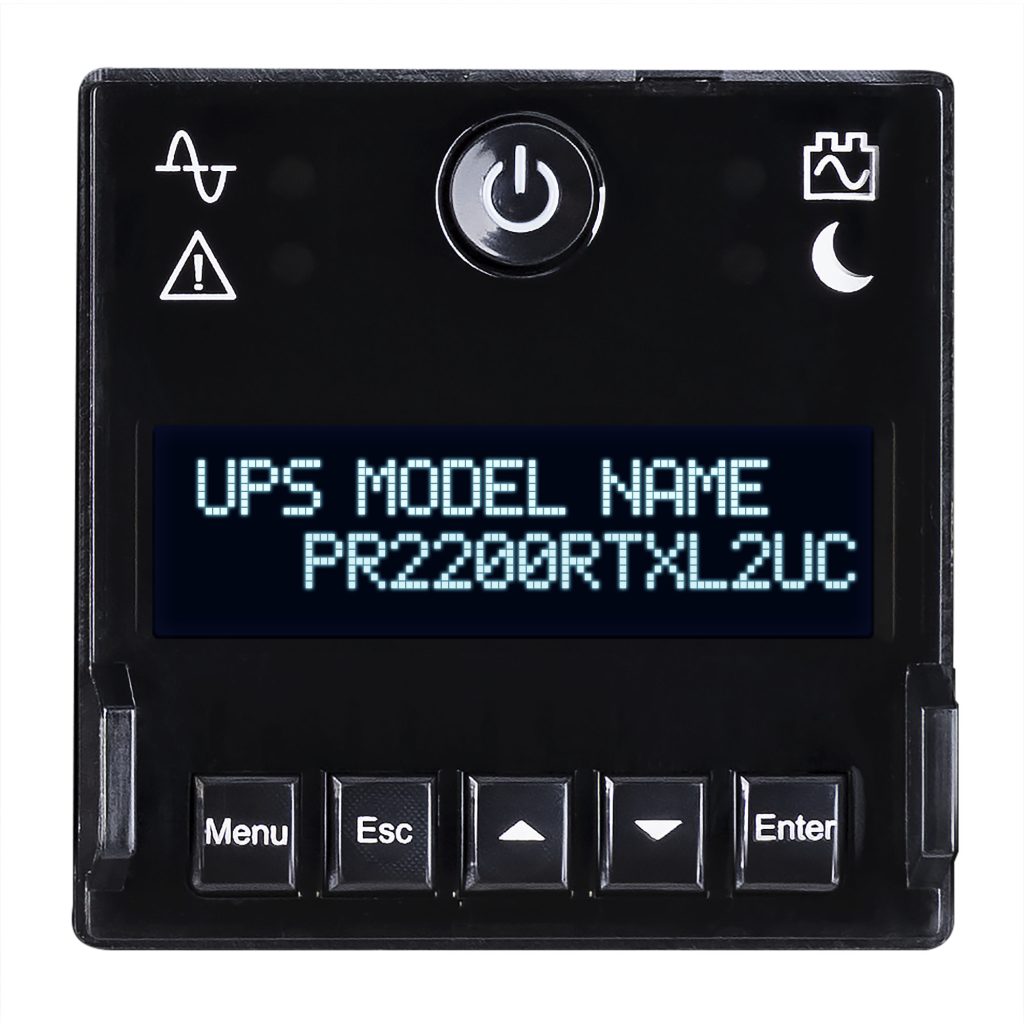 The Smart App Sinewave PR2200RTXL2UC improves battery life through battery equalization technology and Automatic Voltage Regulation (AVR), which corrects minor power fluctuations without switching to battery power. The enhanced chassis design with an easy-to-access toolless front panel, captive screws for battery panel access, and color-coded rear panel make battery changes and installations simple and fast. The PR2200RTXL2UC also has an innovative LCD panel that rotates 90°, tilts for a better viewing angle, and provides information on 47 different settings including UPS stats, UPS setup and control management, and testing options.