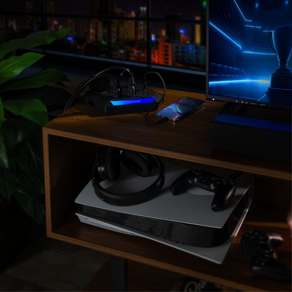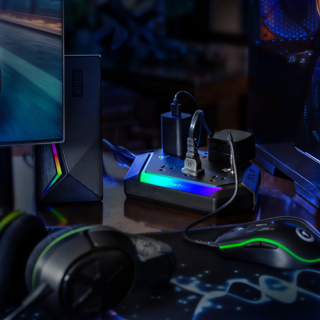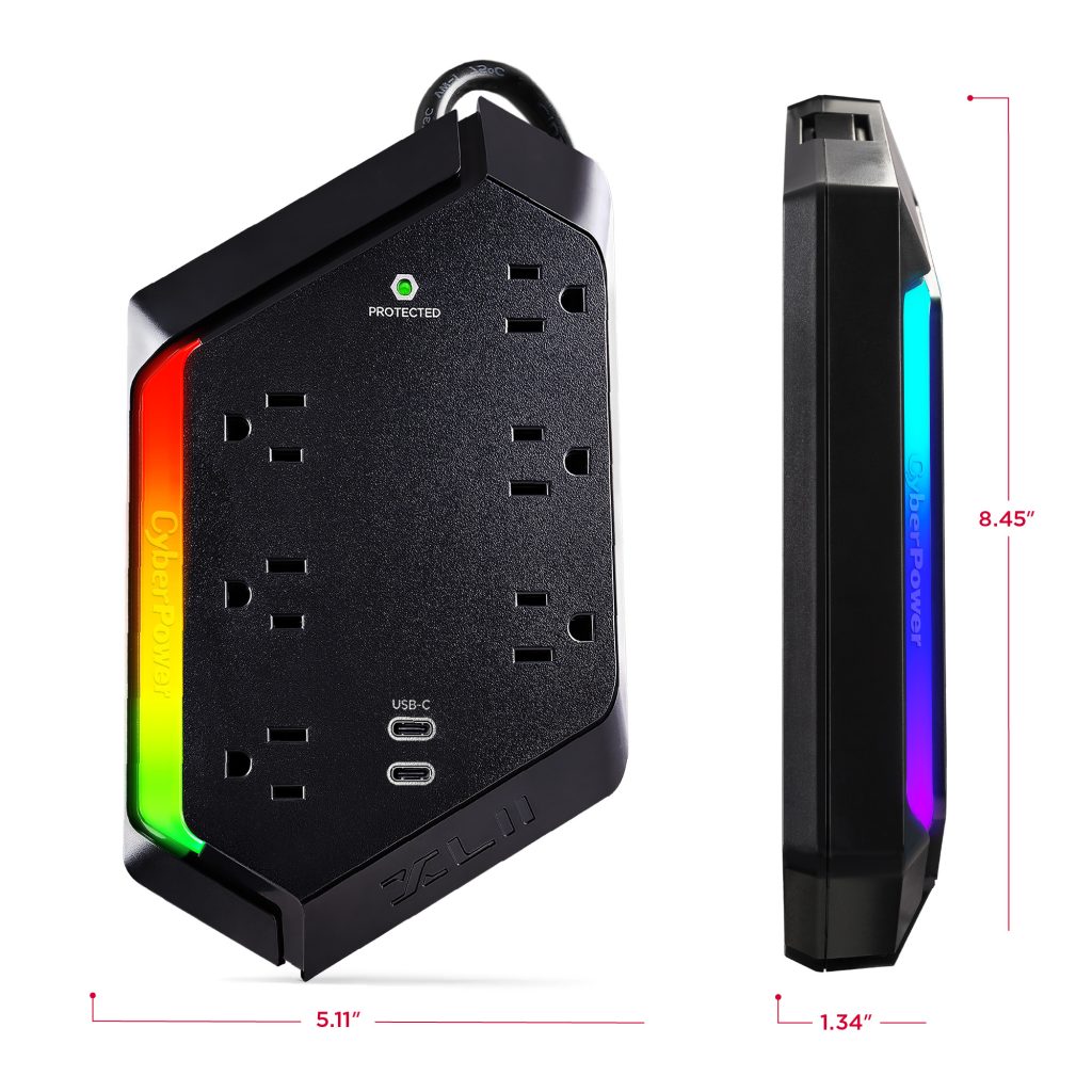 Level up your defense with the CyberPower GXS604C2 Surge Protector – built for gamers who don’t mess around. Whether you're grinding through raids on your console or dominating matches on your PC, this surge protector keeps your gear safe from power spikes and surges with a massive 2400 joules of protection. With 6 wide-spaced outlets, a 4-foot power cord, and dual USB-C ports, you’ve got plenty of room to power your rig, monitors, and charge your controllers—no outlet Tetris required. And the customizable RGB light bar? Yeah, it’s there to sync up with your setup and look just as fresh as the rest of your gear. CyberPower’s got your back with a 1-year limited warranty and a $300,000 Connected Equipment Guarantee. Stay powered. Stay protected. Stay in the game.