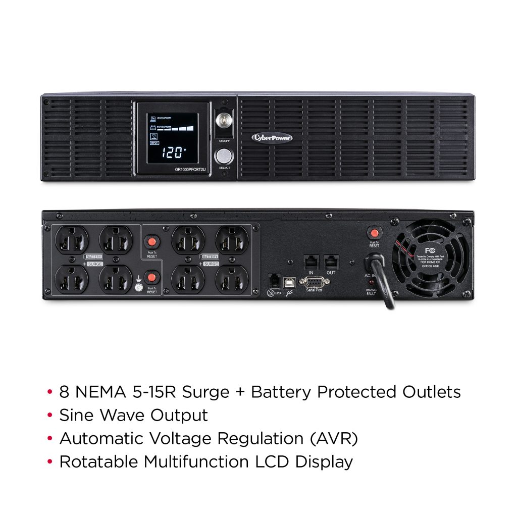 A a rack/tower UPS with line interactive topology, the CyberPower PFC Sinewave OR1000PFCRT2U provides power protection (using sine wave output) and surge protection for department servers, workgroup servers, network devices and telecom equipment requiring Active PFC power source compatibility. The OR1000PFCRT2U uses Automatic Voltage Regulation (AVR) to correct minor power fluctuations without switching to battery power, which extends battery life. AVR is essential in areas where power fluctuations occur frequently. The OR1000PFCRT2U comes with a three-year warranty and a $300,000 Connected Equipment Guarantee.