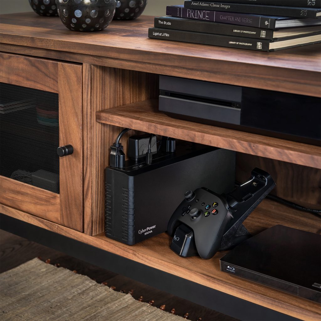 The CyberPower SL950U uninterruptible power supply (UPS) system provides surge protection for lightning-induced surges and other power events that can damage electronic equipment. This unit delivers enough battery backup to connected devices during a utility power failure, so you can perform a graceful shutdown to protect against the loss of data and damage to valuable electronics including computers, gaming consoles, and home networking equipment.