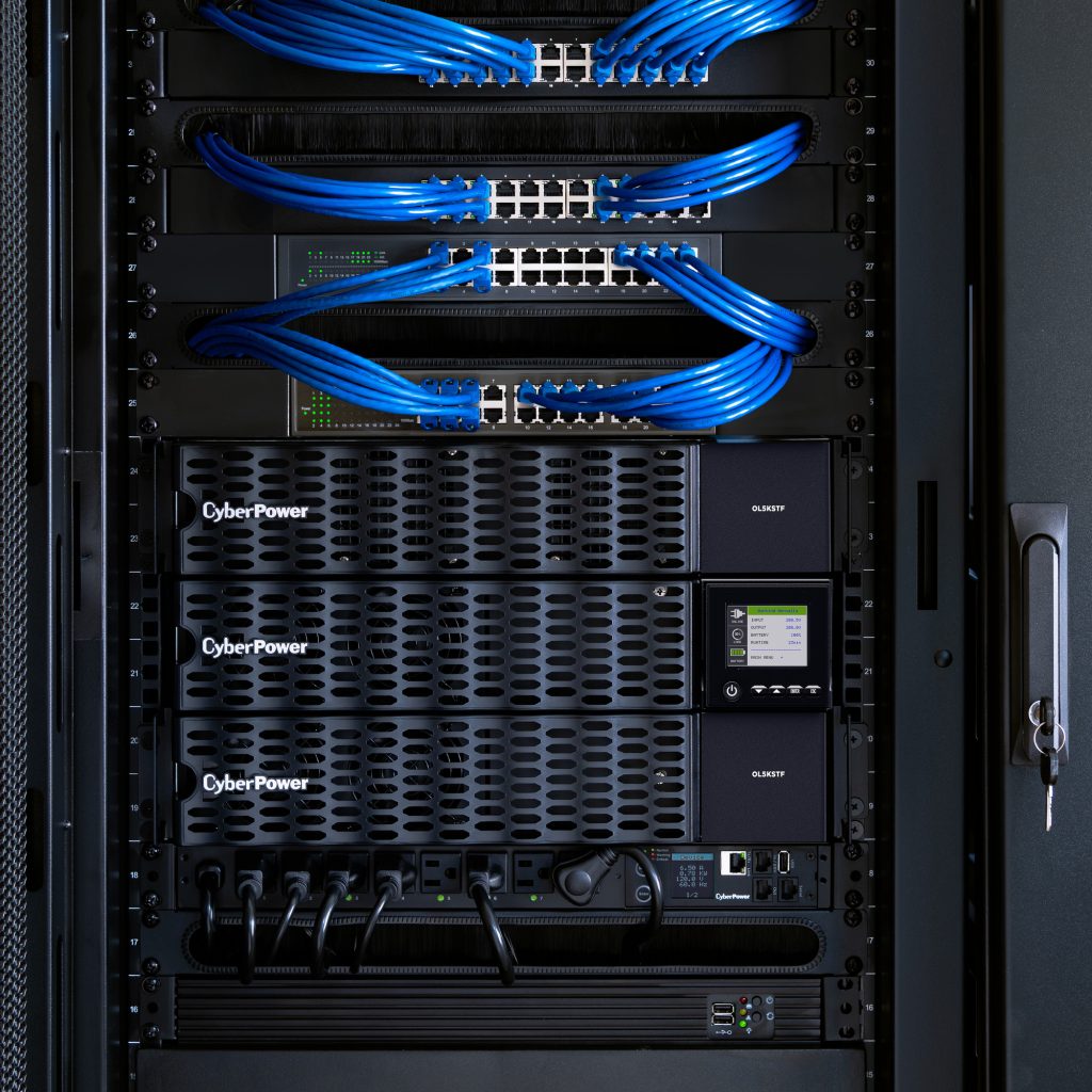 The step-down transformer provides IT managers the ability to support 120 V output requirements. With twelve (12) NEMA 5-20R outlets available, users will have sufficient outlets to connect multiple 120 V devices running at 15 A and/or 20 A. If additional outlets are needed, CyberPower has a number of different Power Distribution Units (PDU) making it easy to address your specific outlet needs. - Rack/Tower Versatility
